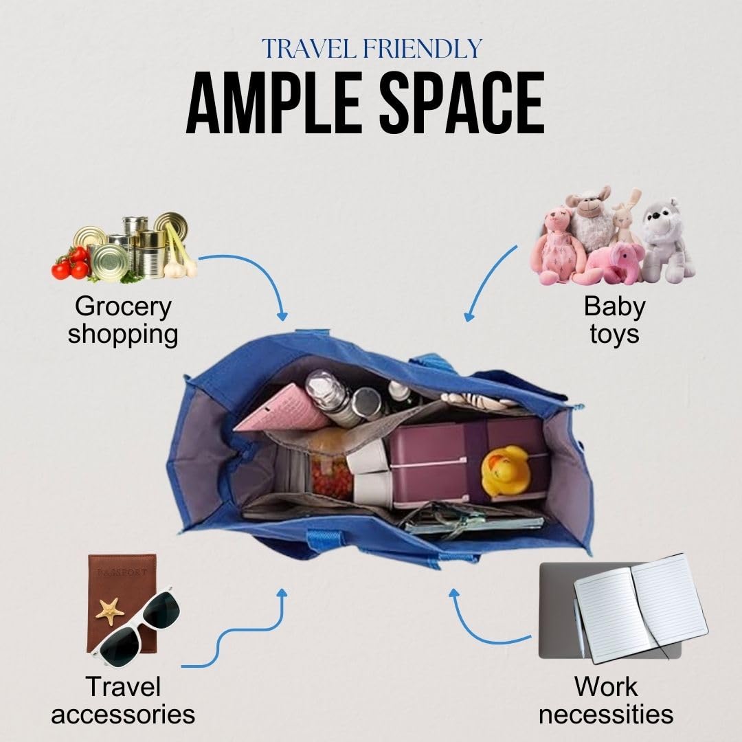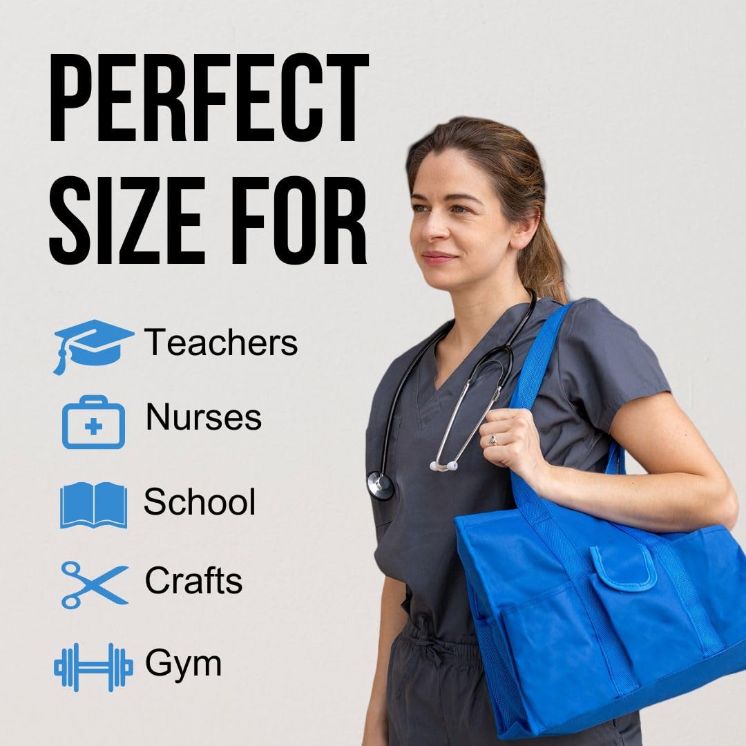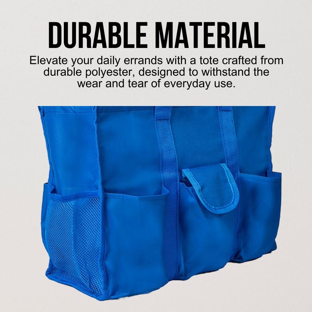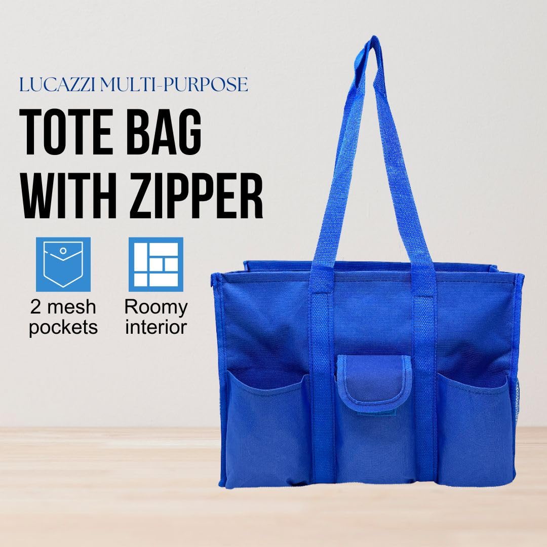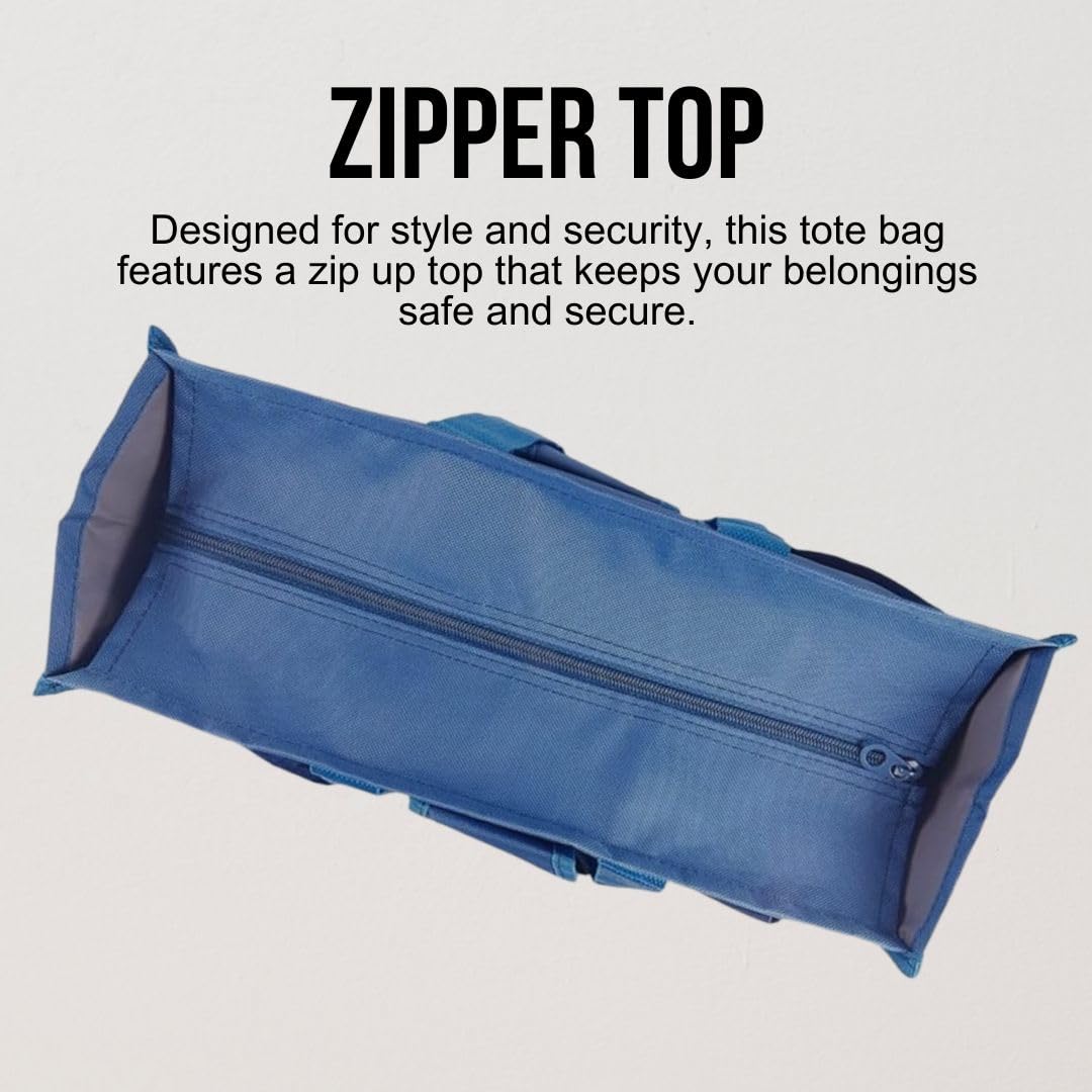 Utility Tote Bag with Zipper Top - Large Multipurpose Tote Organizer Bag - Blue