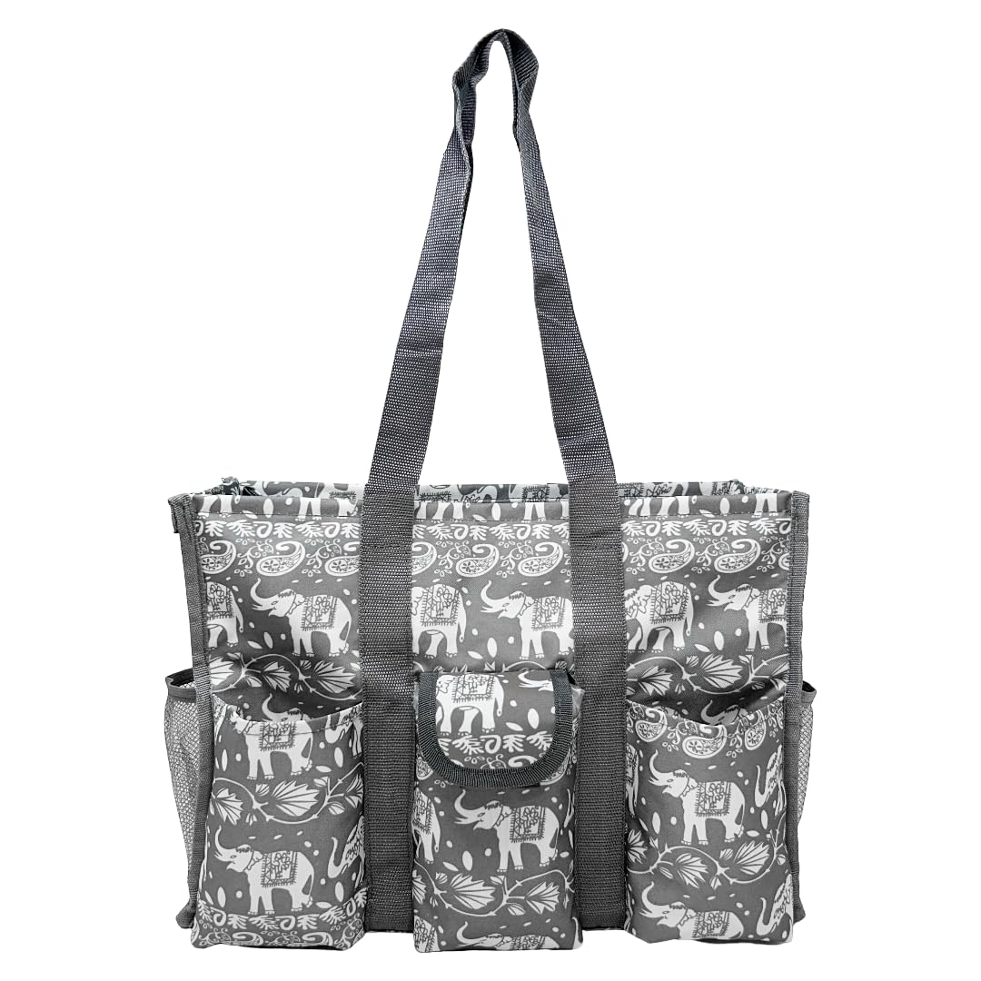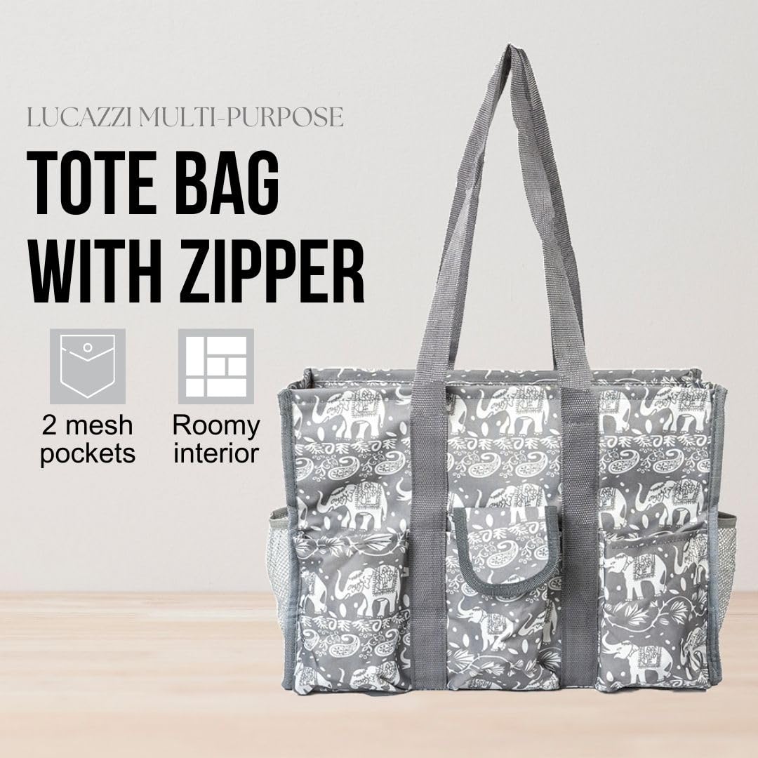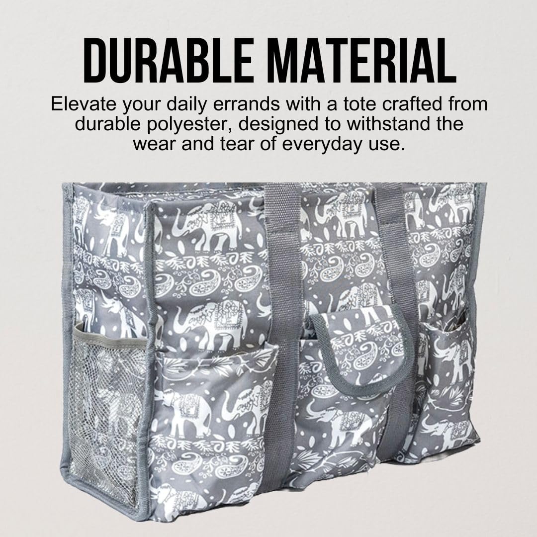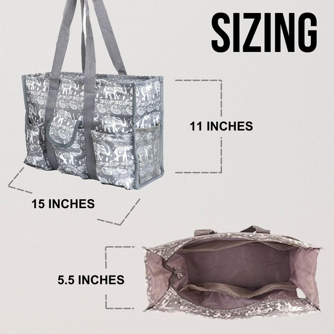 Utility Tote Bag with Zipper Top - Large Multipurpose Tote Organizer Bag - Elephant Gray