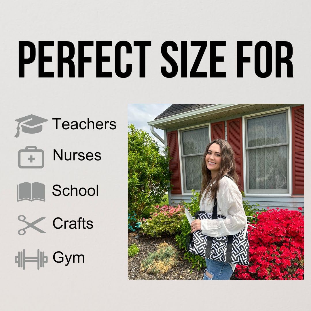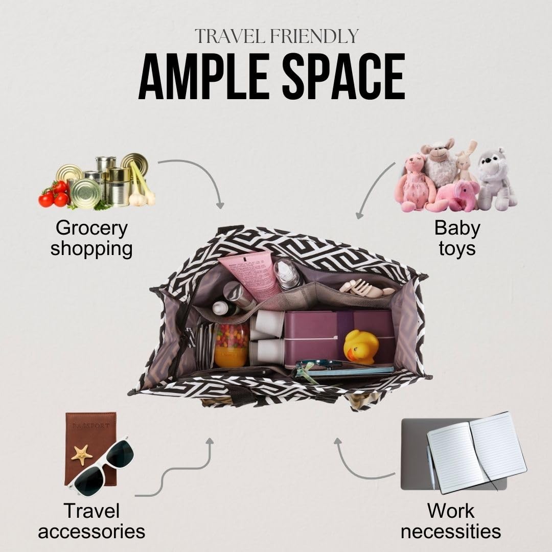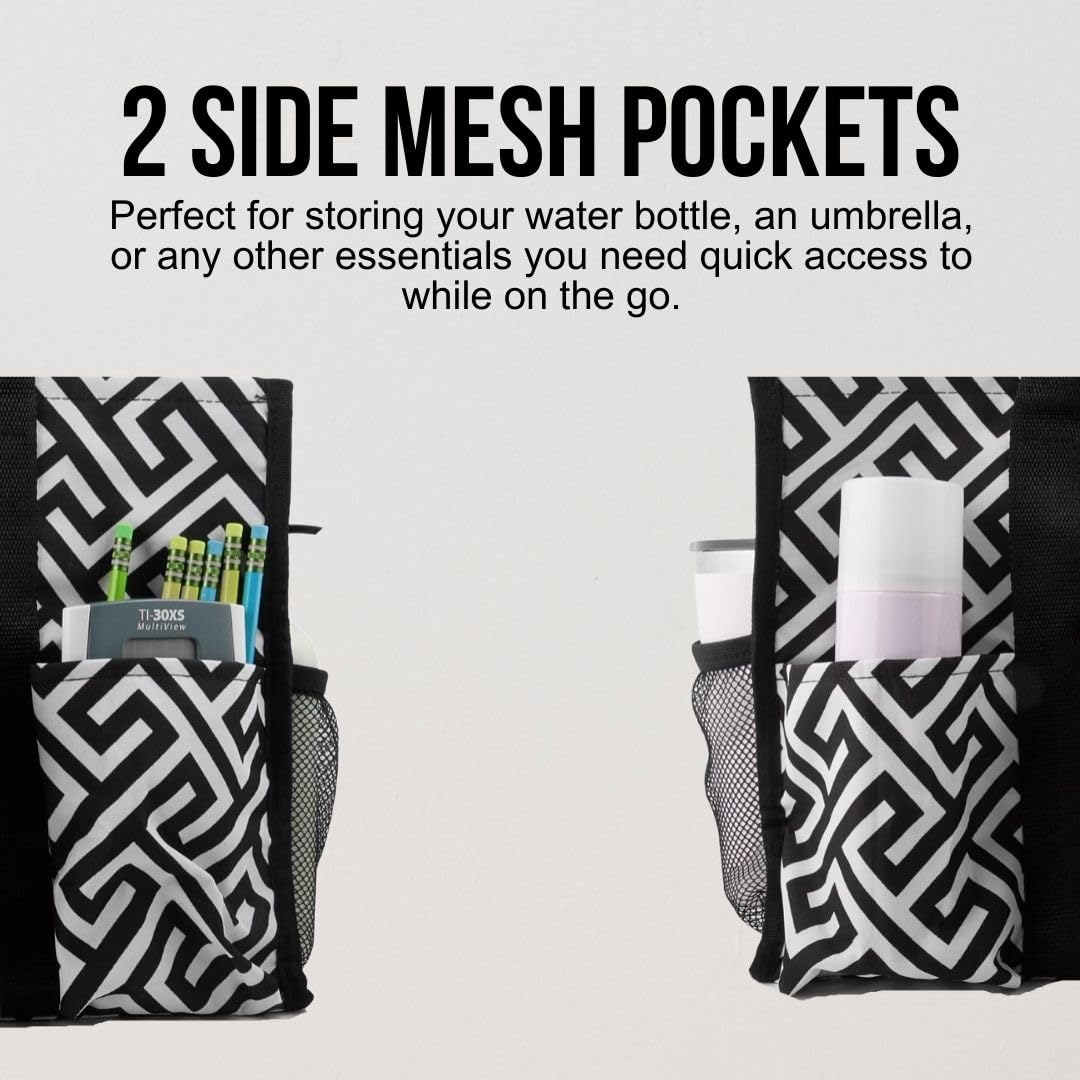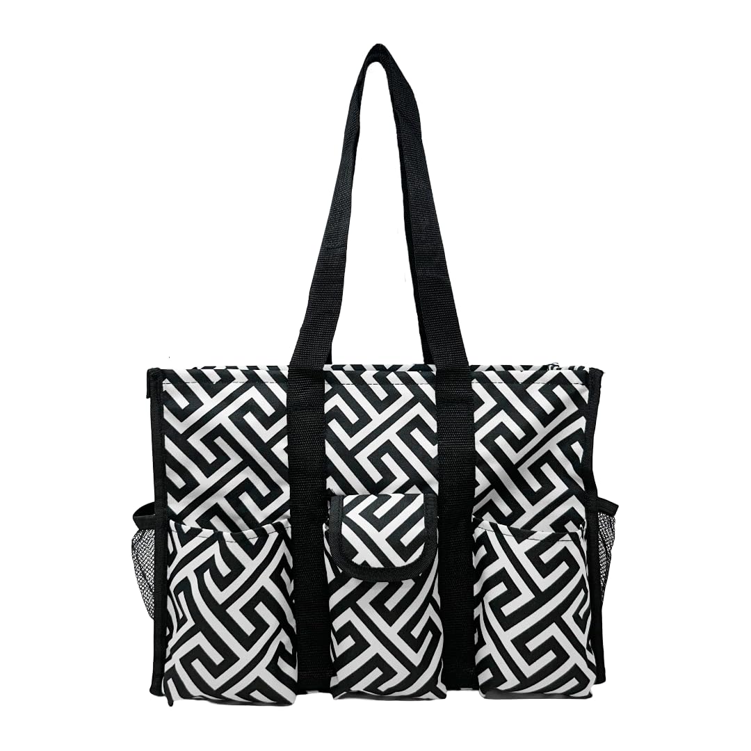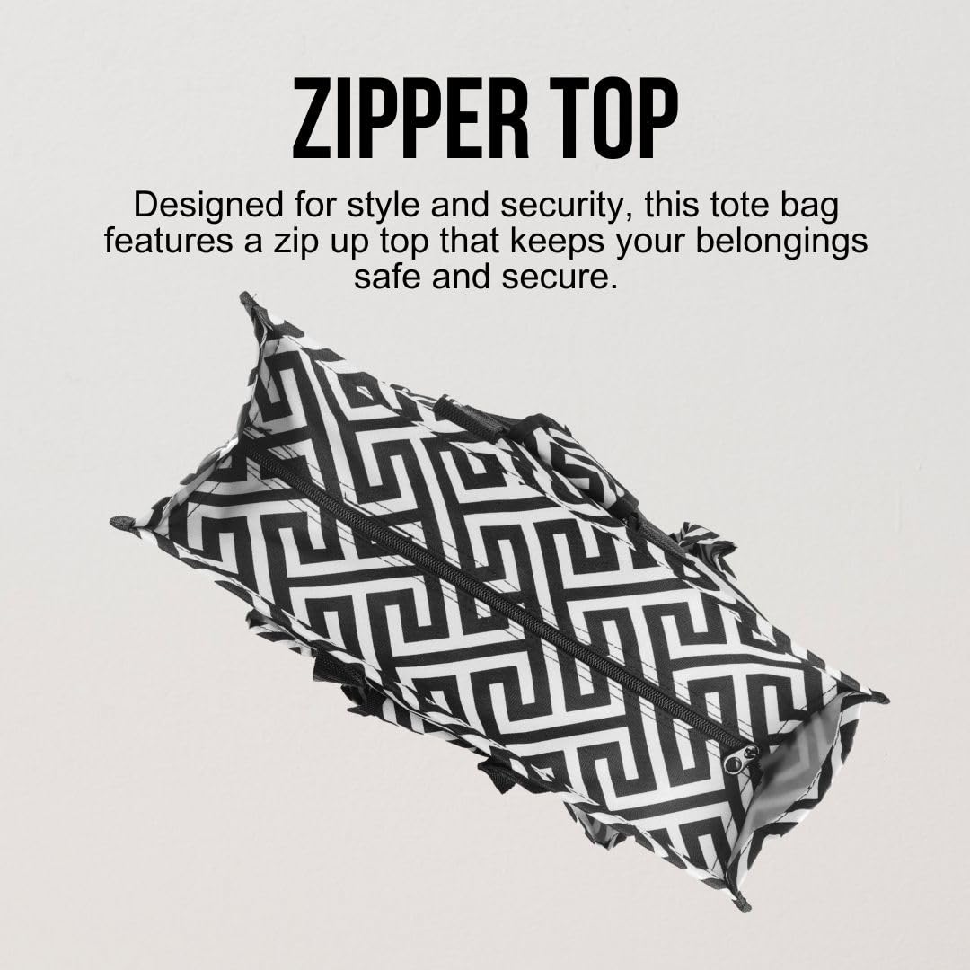 Utility Tote Bag with Zipper Top - Large Multipurpose Tote Organizer Bag - Geo Black
