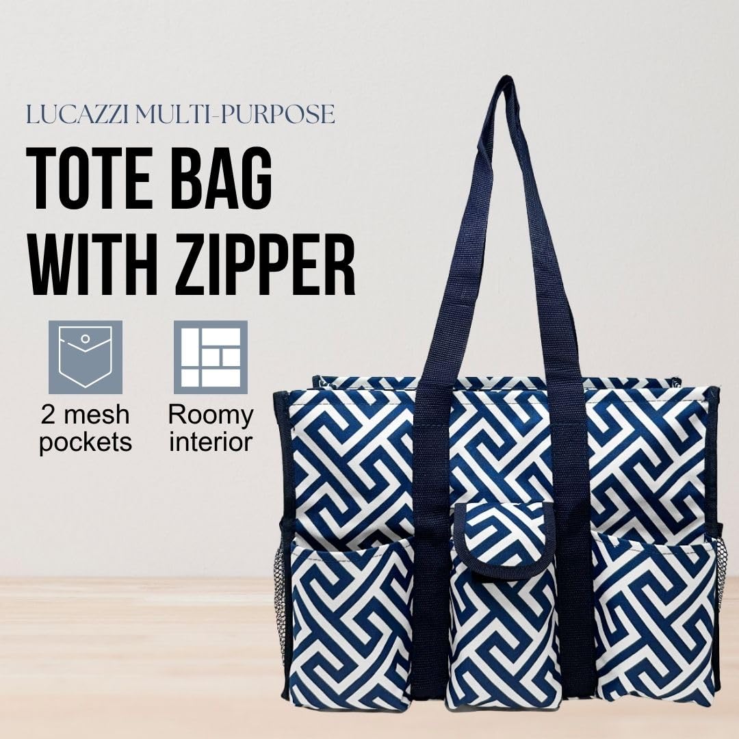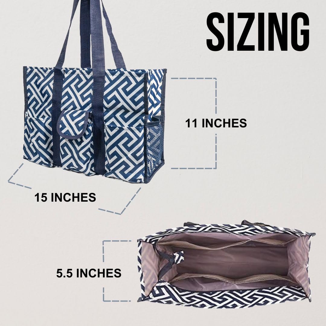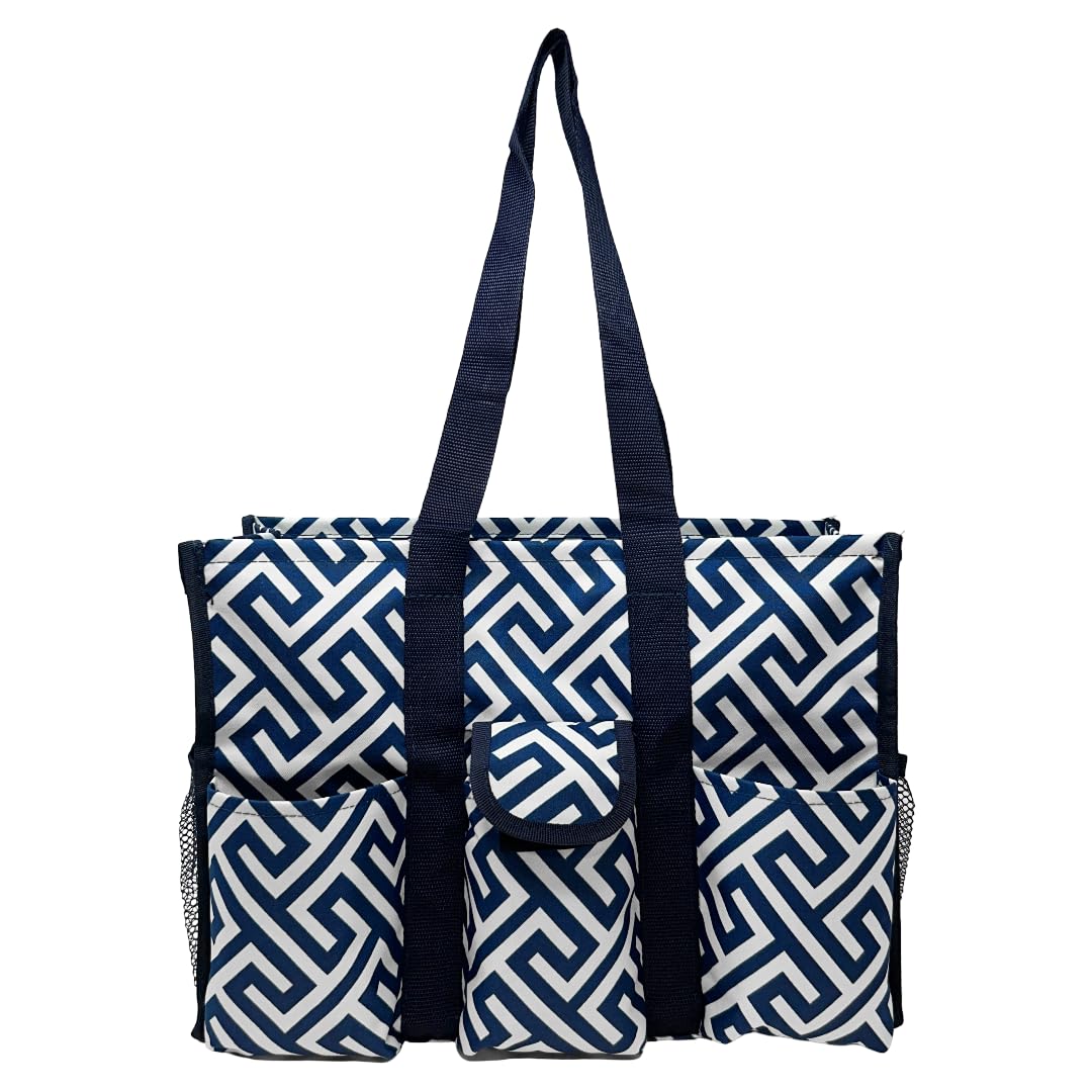 Utility Tote Bag with Zipper Top - Large Multipurpose Tote Organizer Bag - Geo Navy