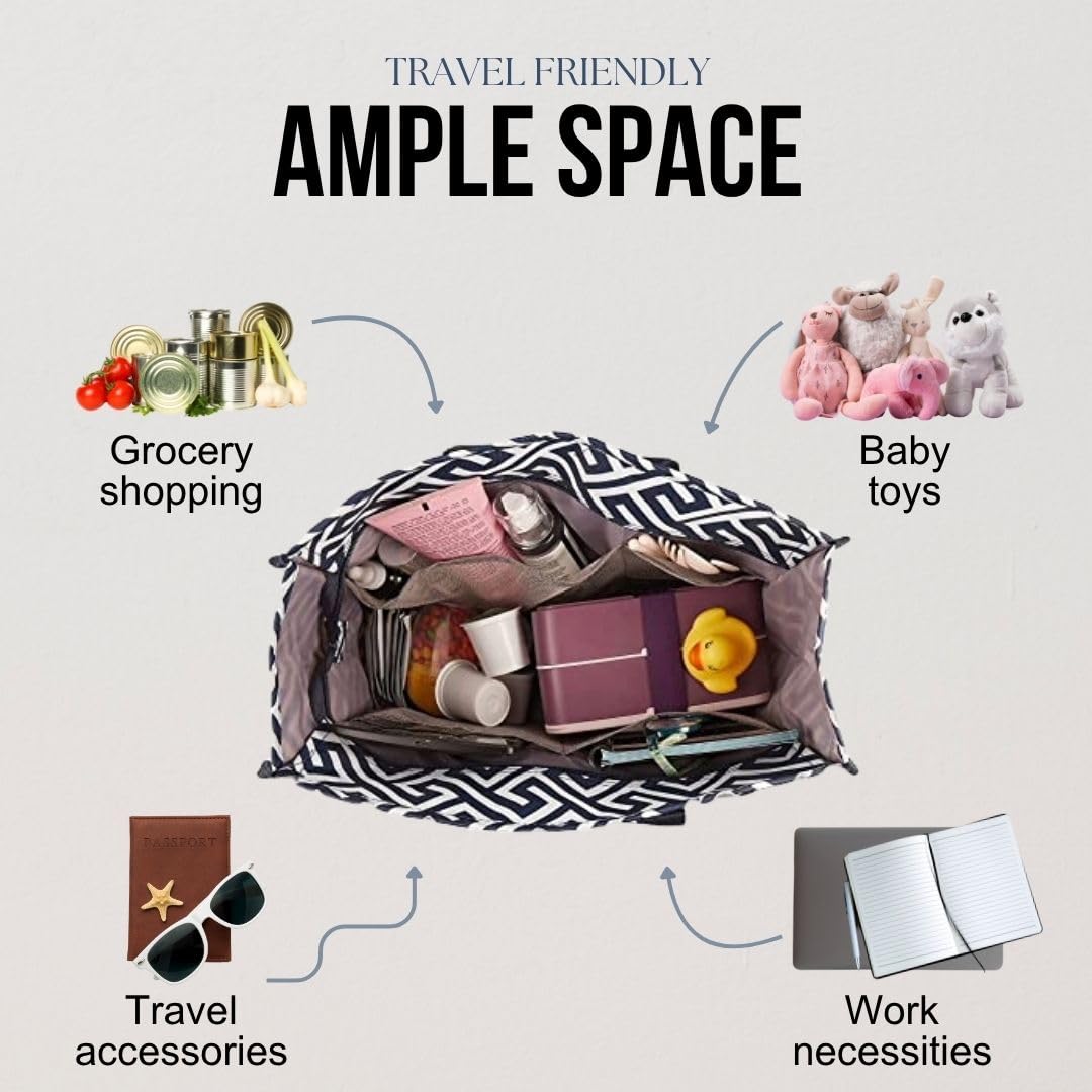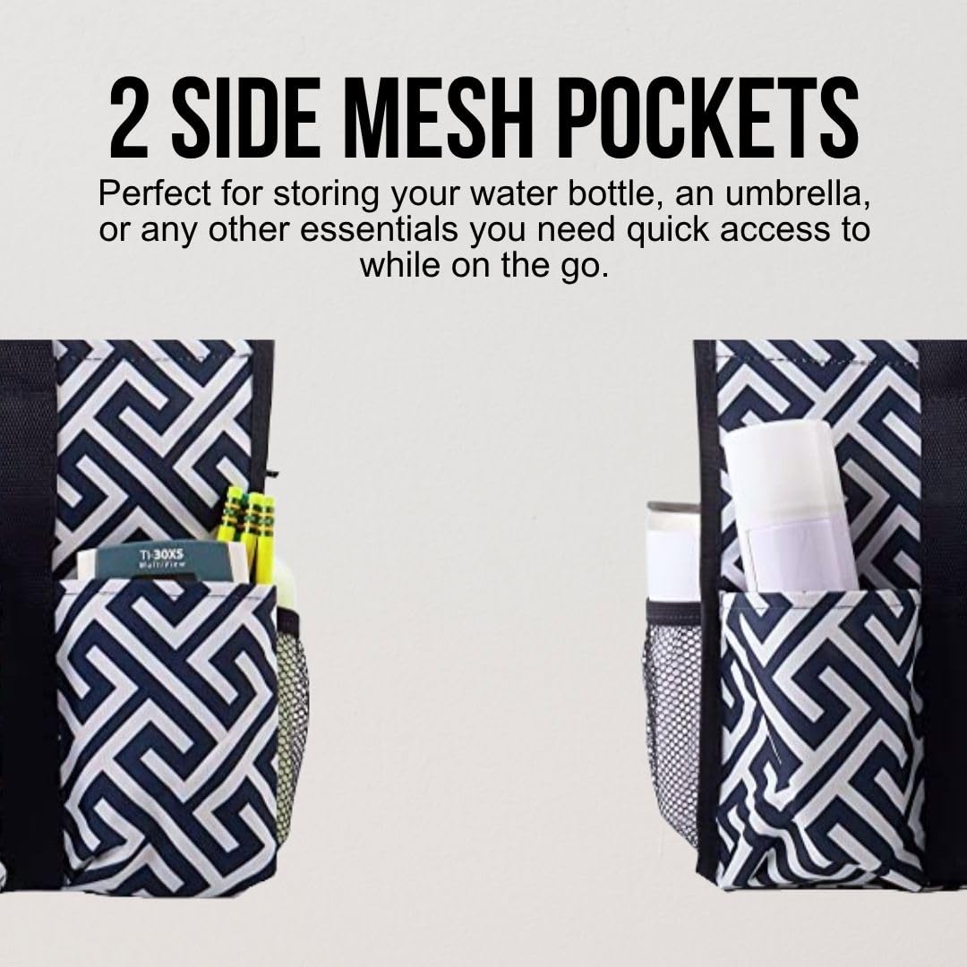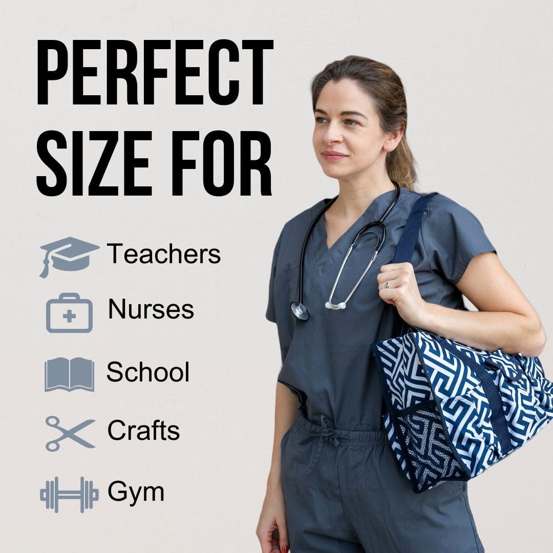 Utility Tote Bag with Zipper Top - Large Multipurpose Tote Organizer Bag - Geo Navy