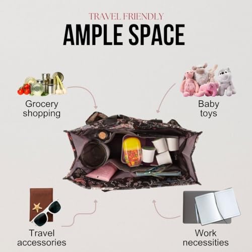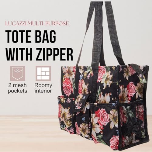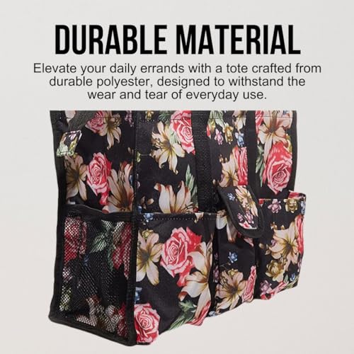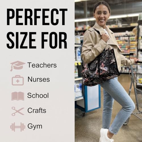Utility Tote Bag with Zipper Top - Large Multipurpose Tote Organizer Bag - White Floral