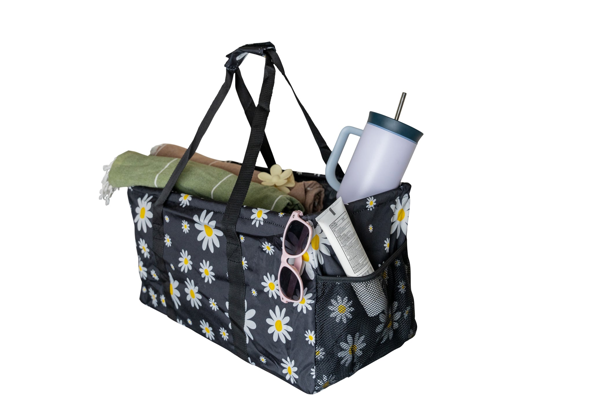 Extra Large Utility Tote Bag - Oversized Collapsible Pool Beach Canvas Basket - Daisy