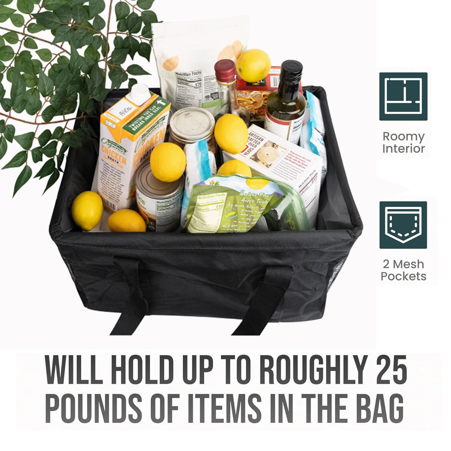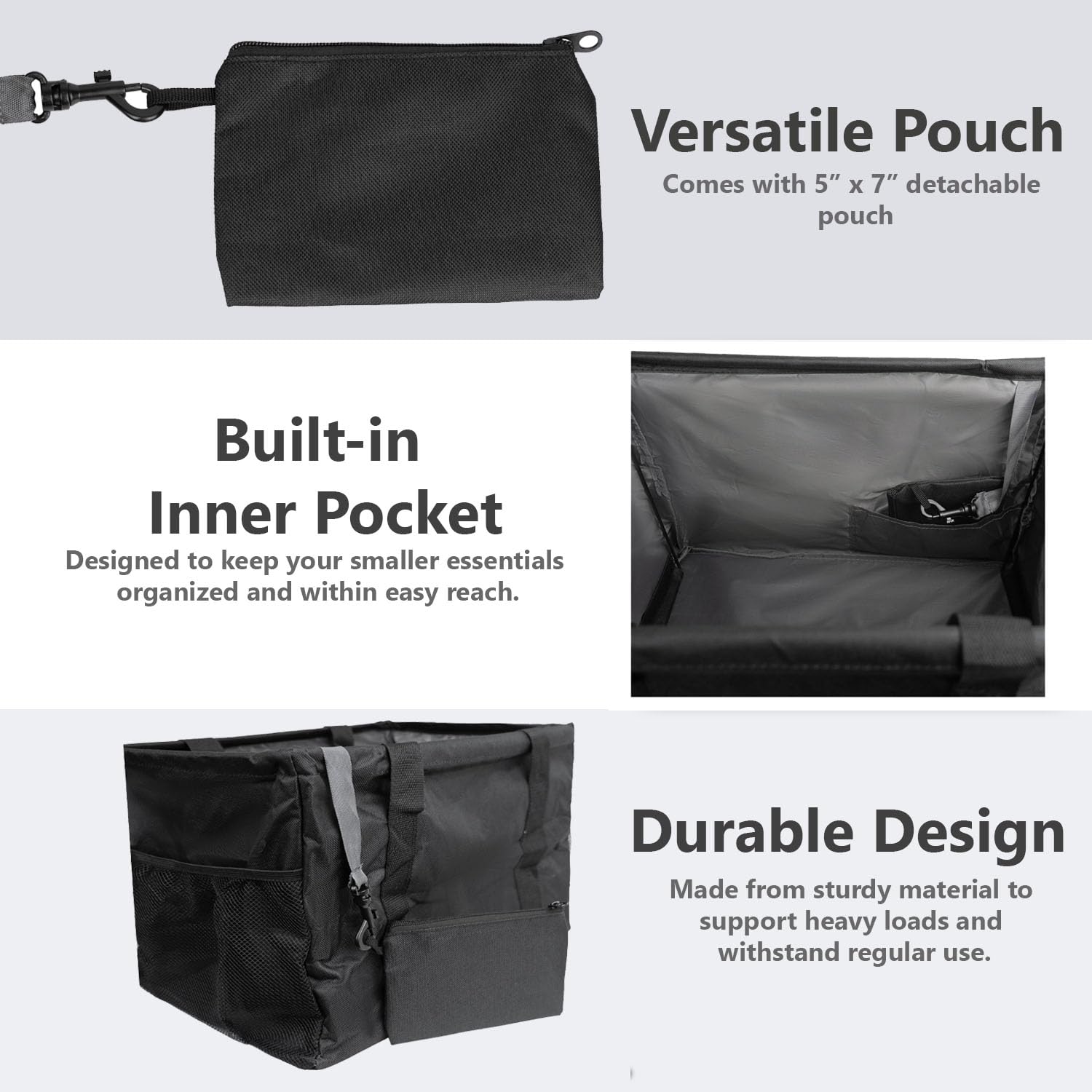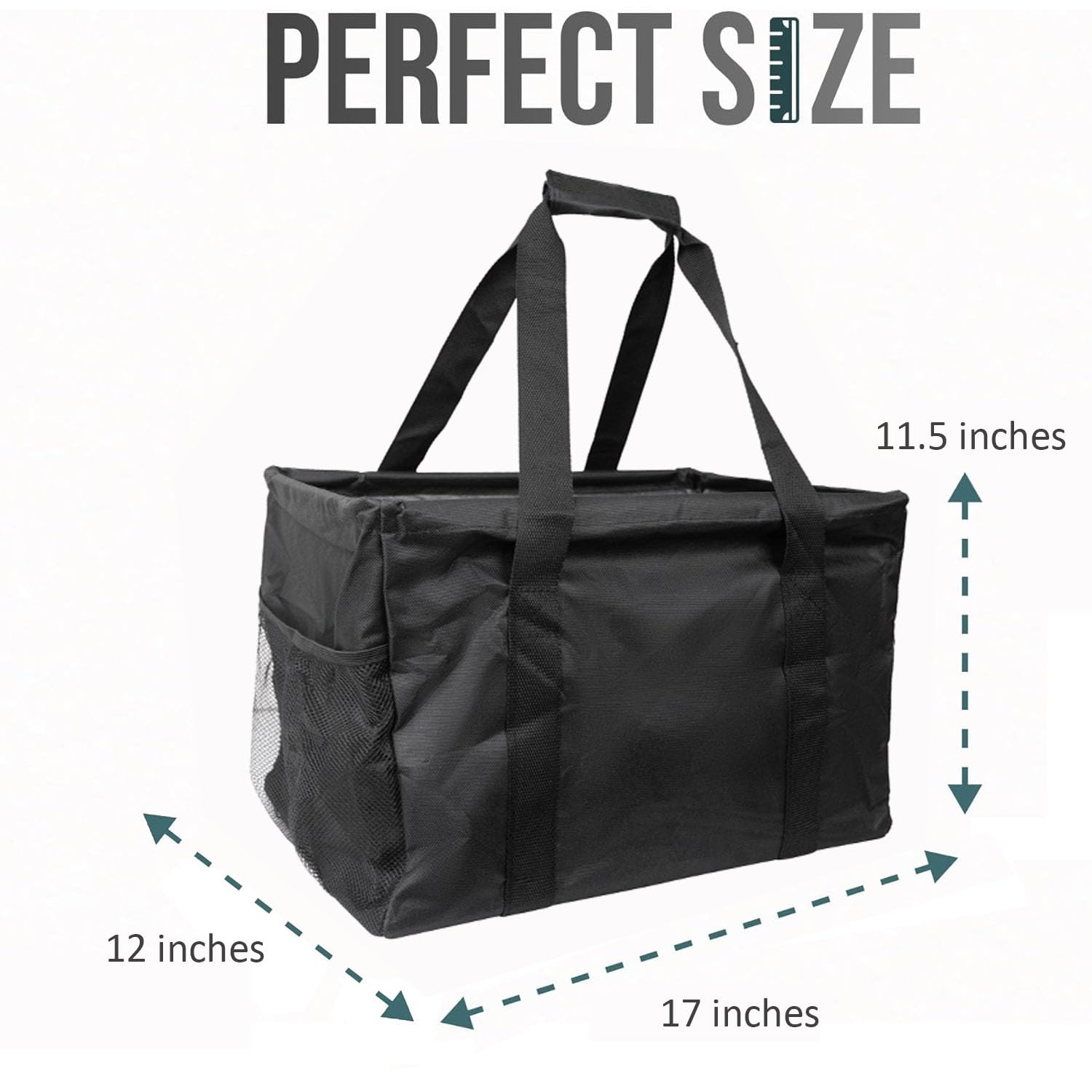 Large Utility Tote Bag - Oversized Collapsible Tote with Wire Frame - Includes 5x7 Bag with Hook - Black