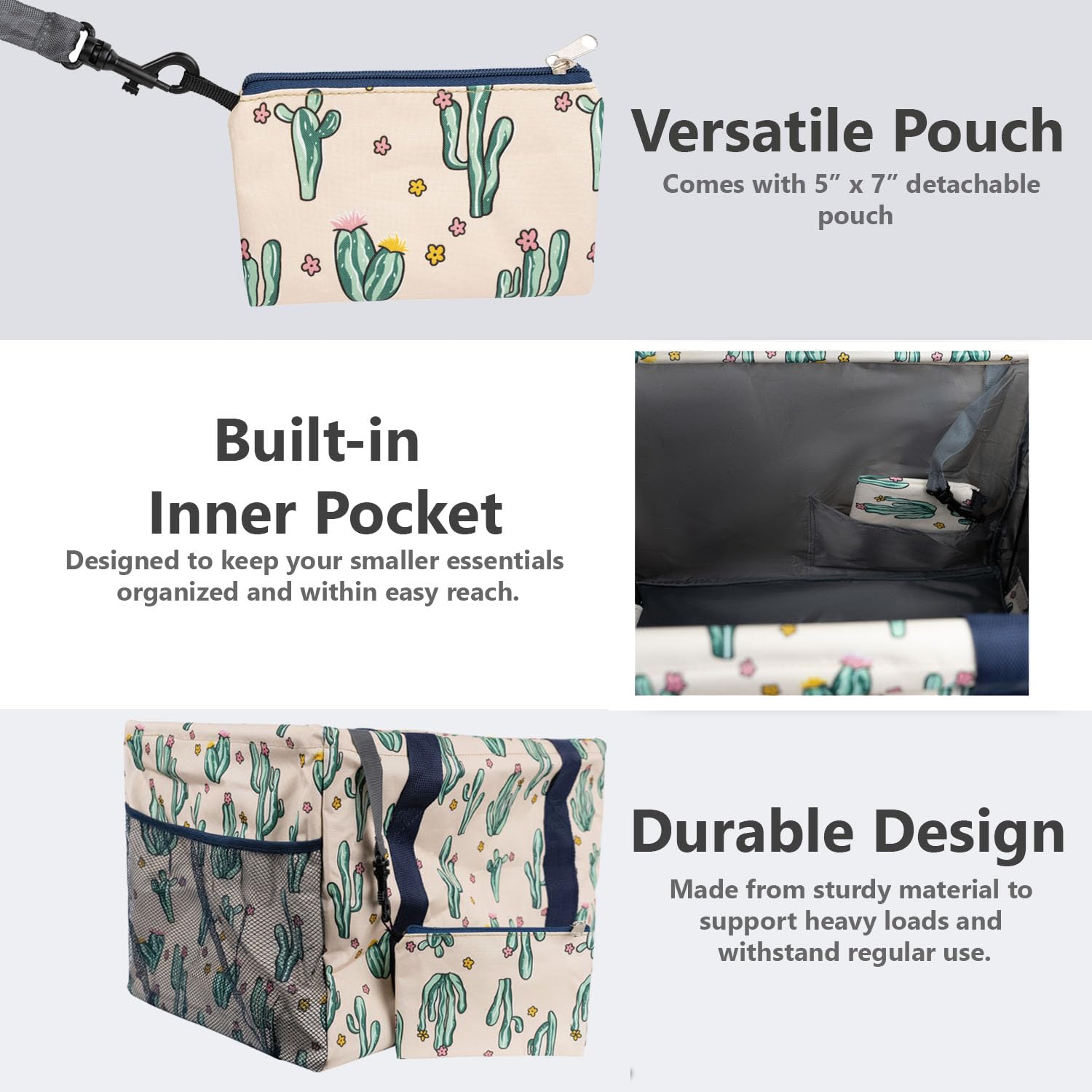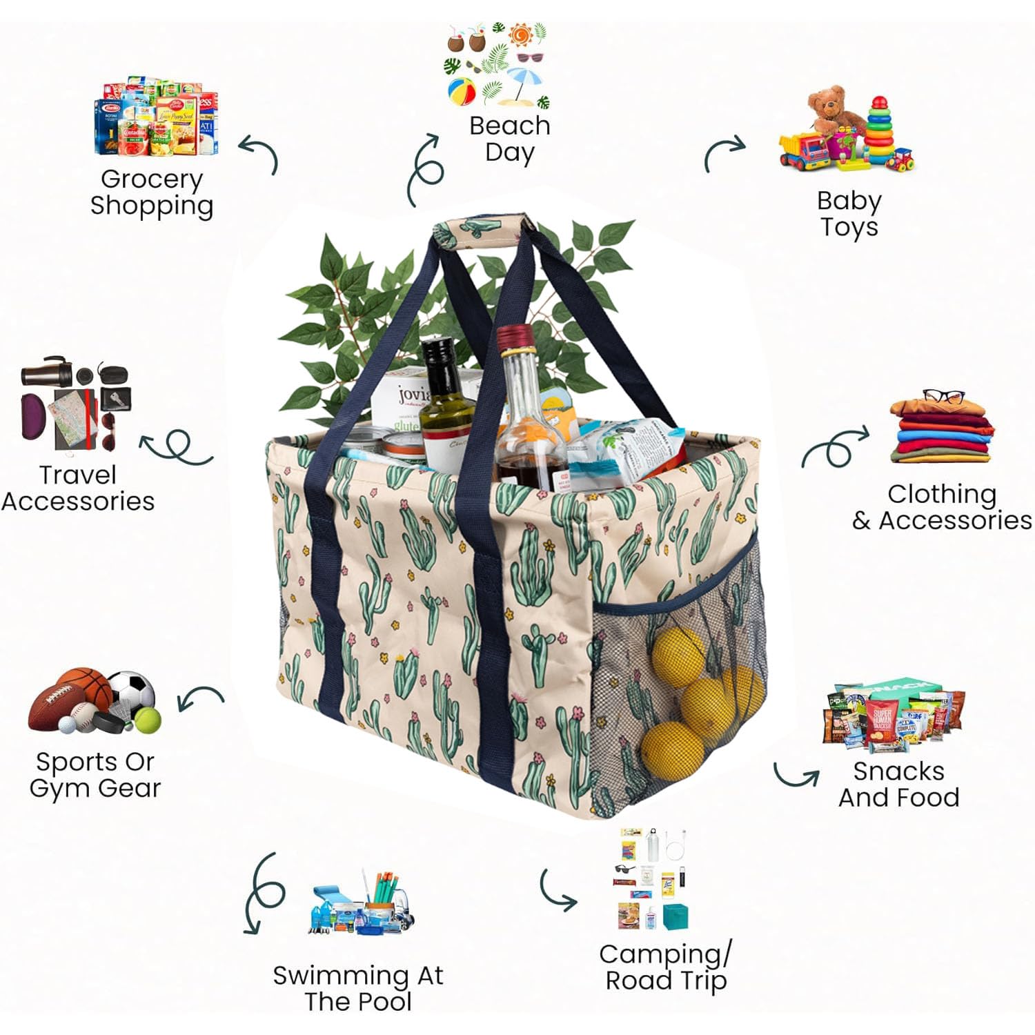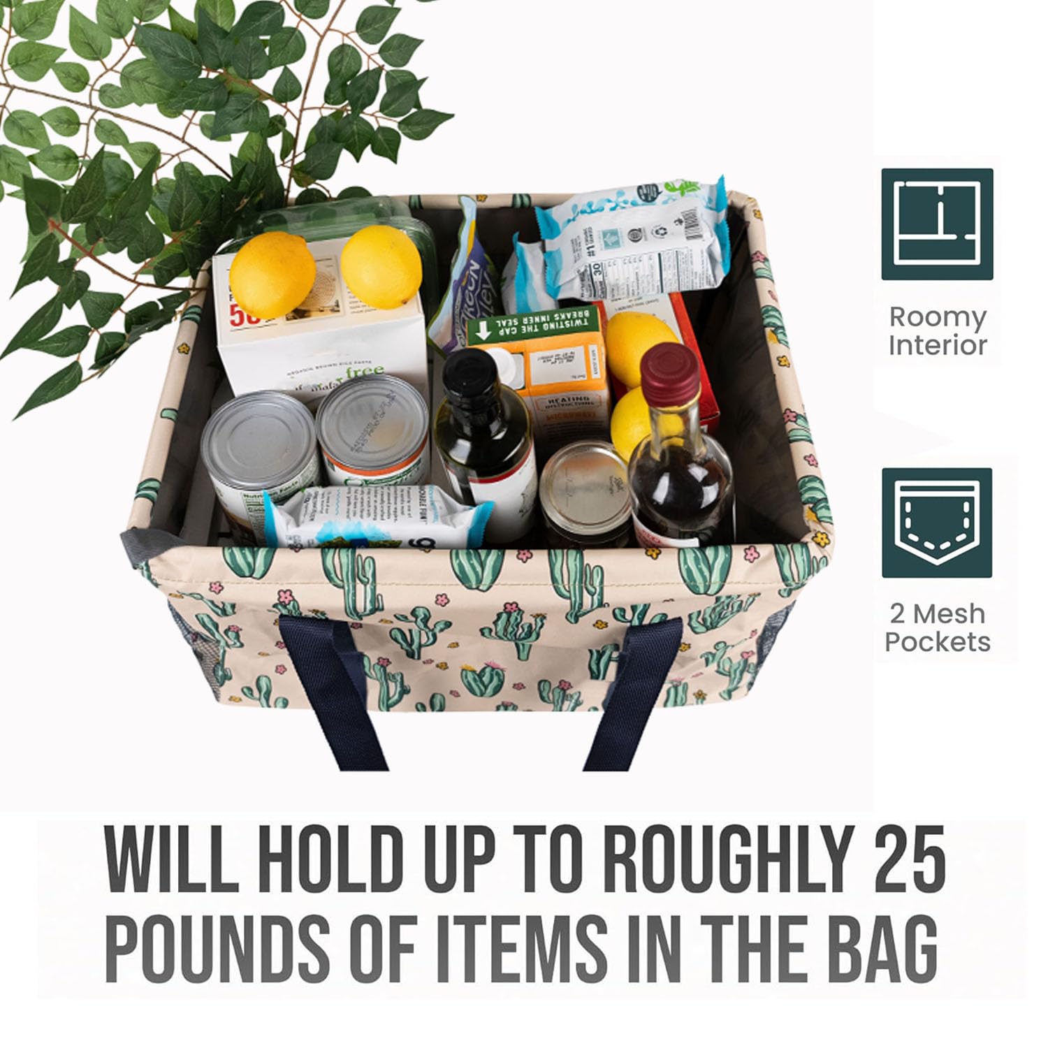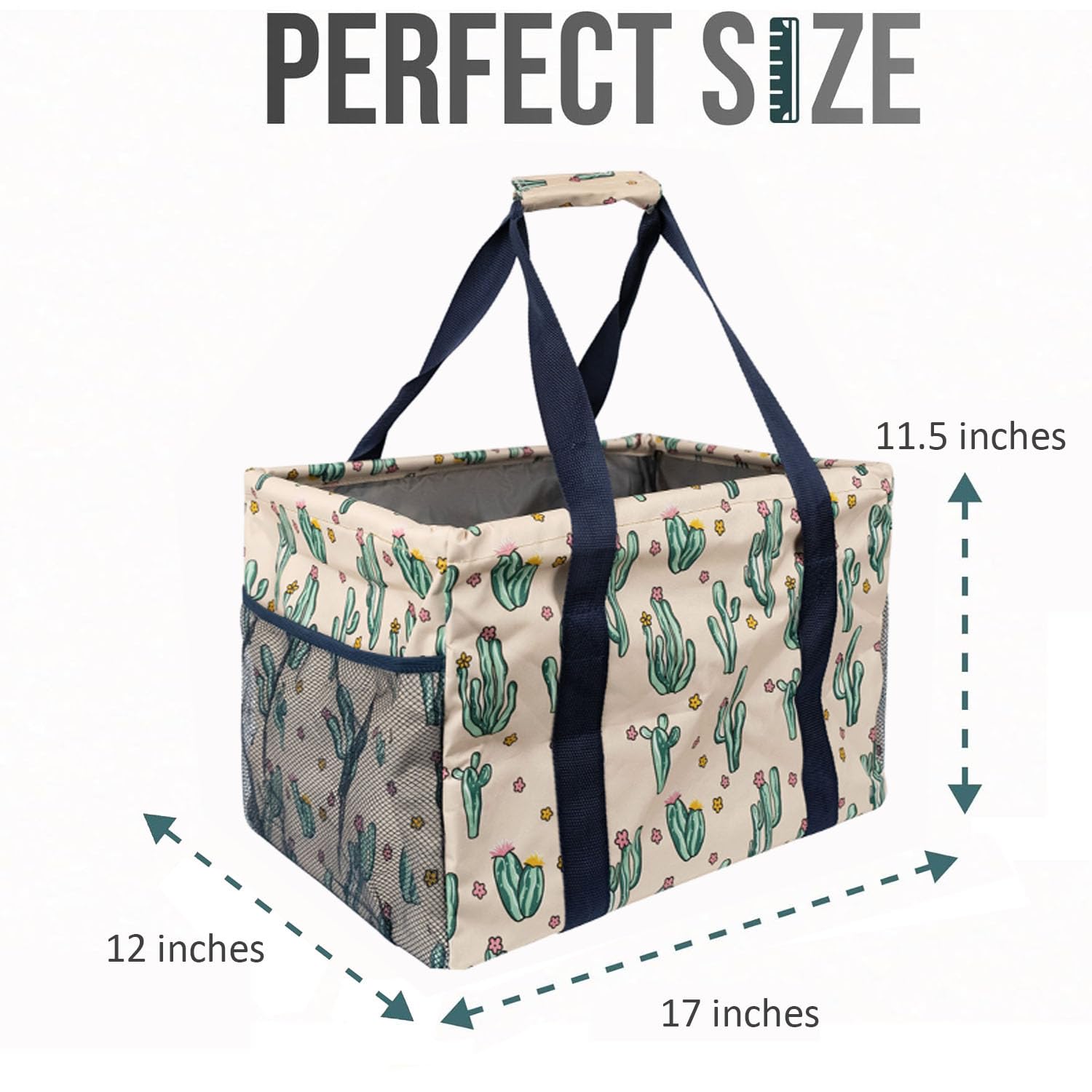 Large Utility Tote Bag - Oversized Collapsible Tote with Wire Frame - Includes 5x7 Bag with Hook - Cactus Beige