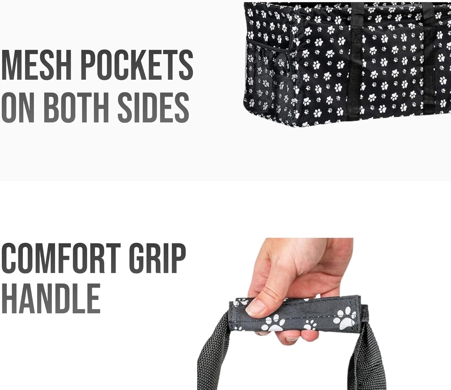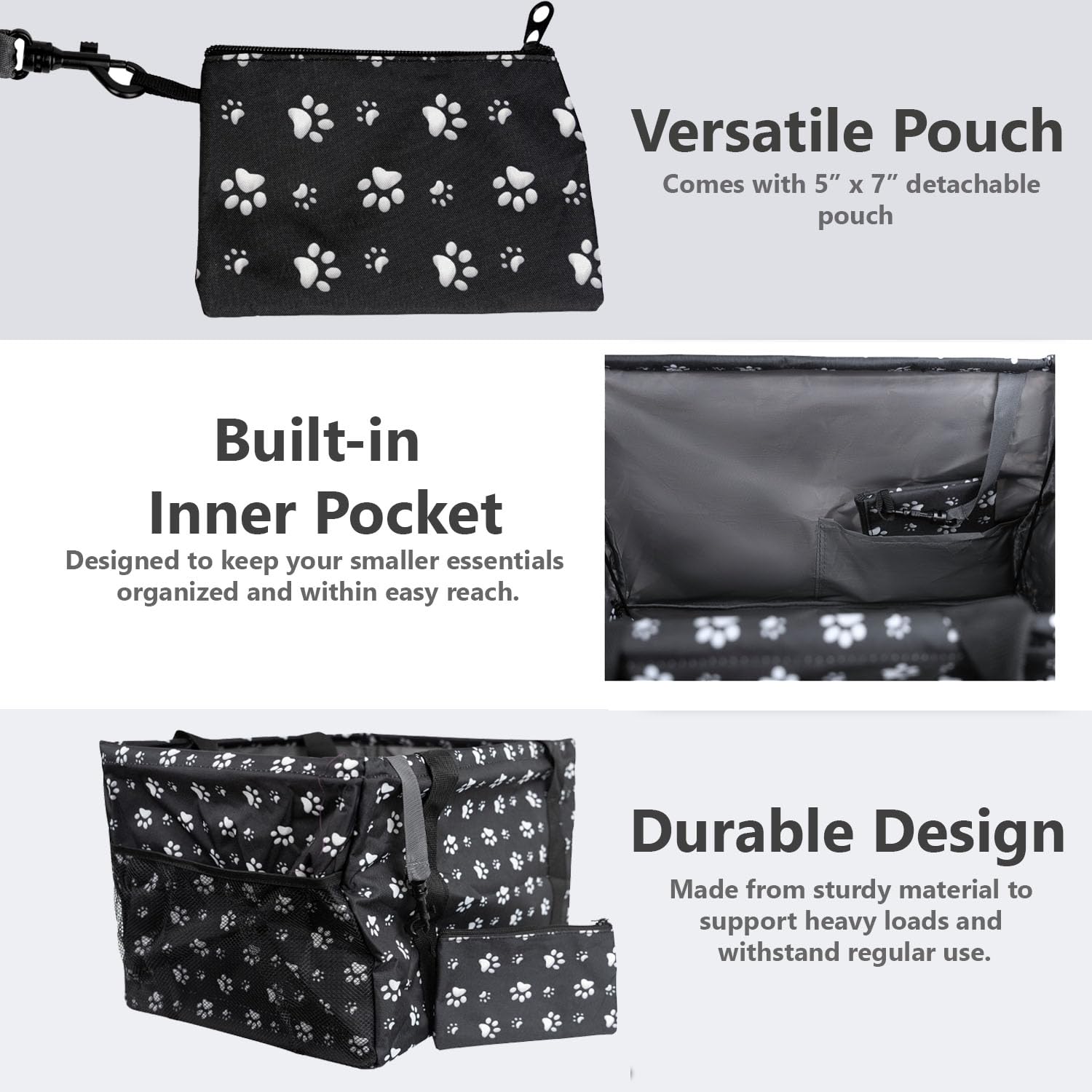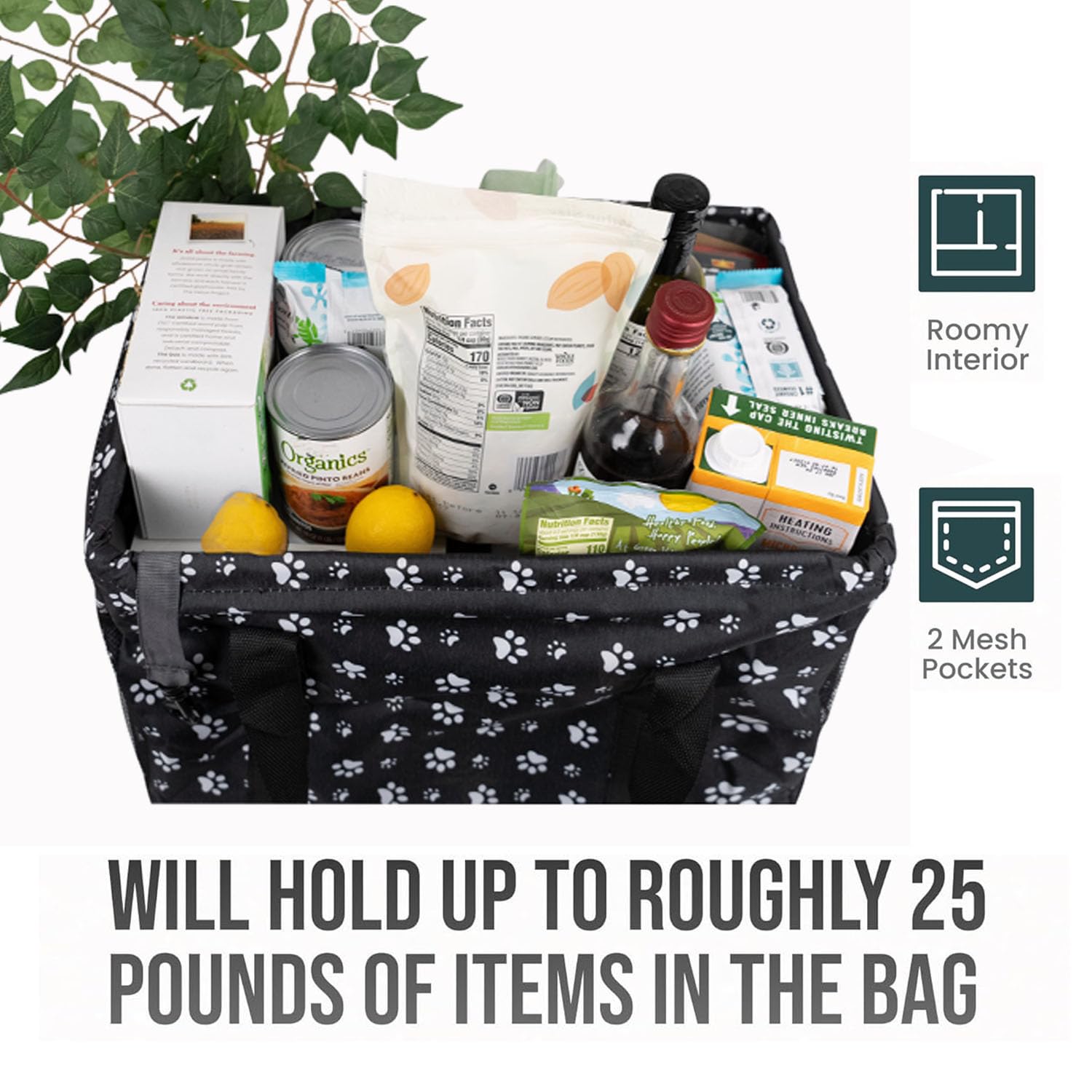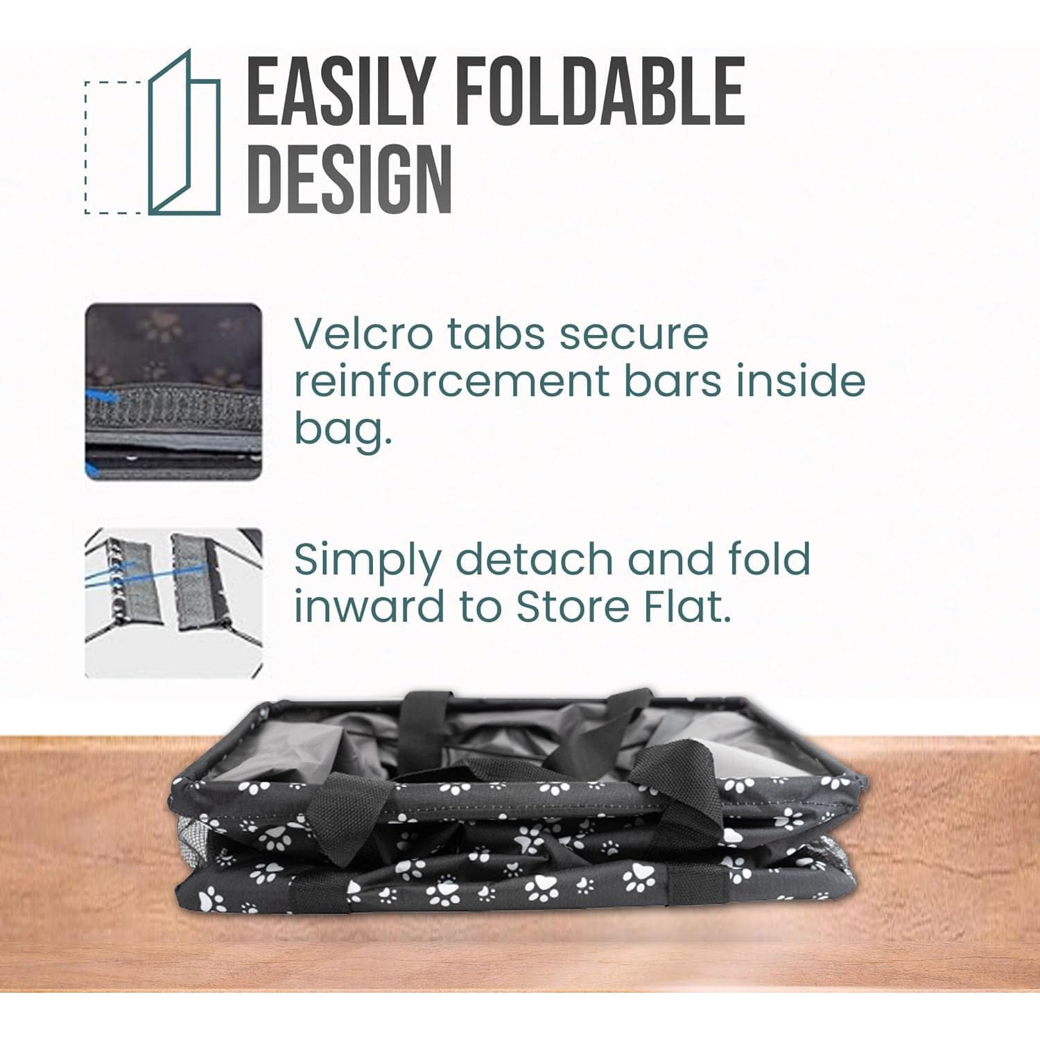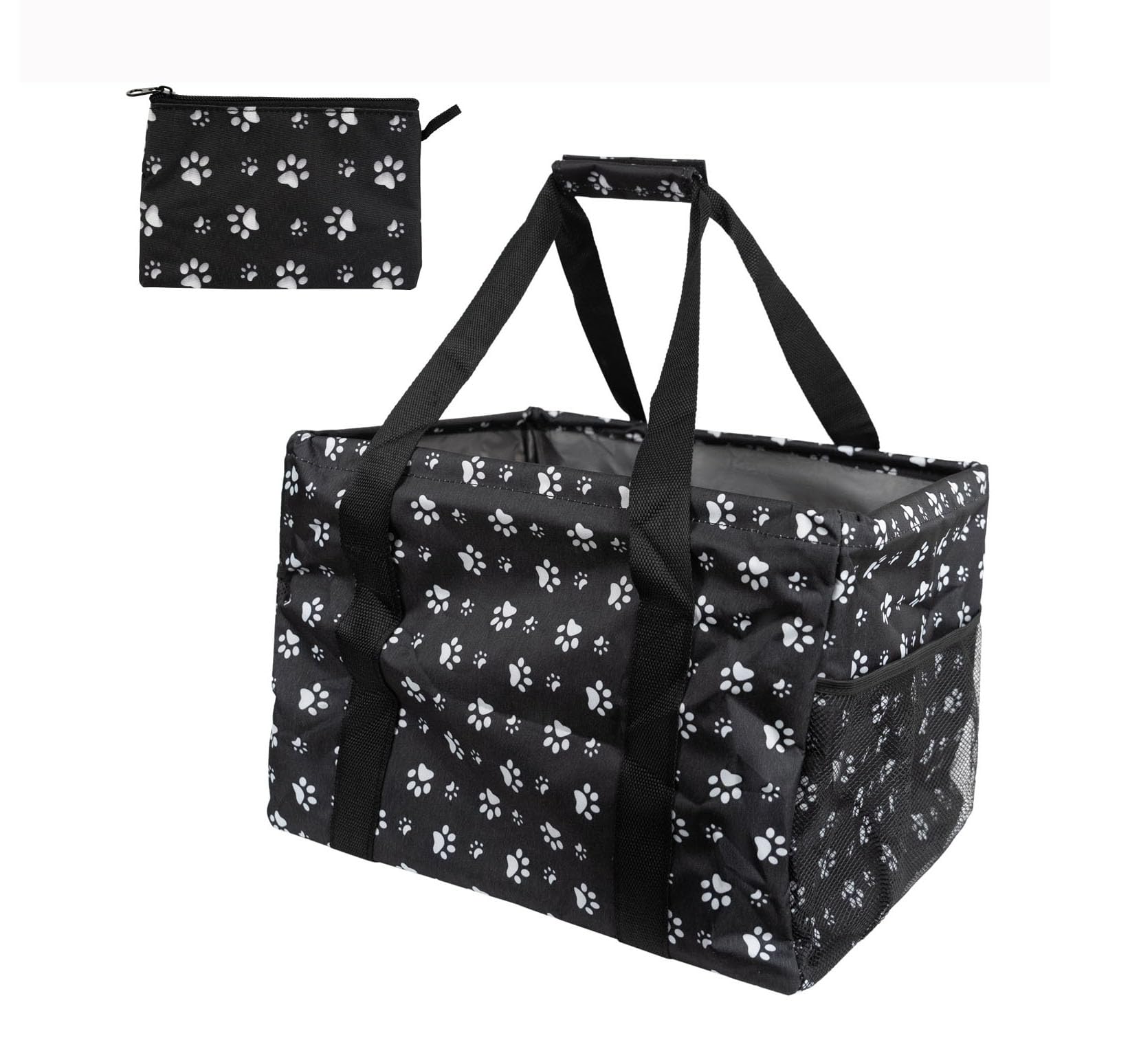 Large Utility Tote Bag - Oversized Collapsible Tote with Wire Frame - Includes 5x7 Bag with Hook - Dog Paw