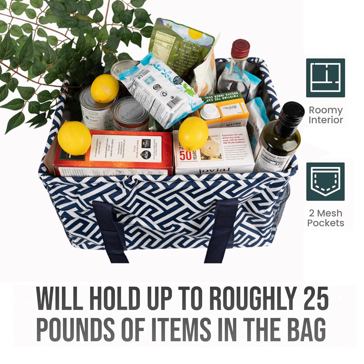 • Large Utility Tote Bag - Oversized Collapsible Tote with Wire Frame - Includes 5x7 Bag with Hook - Geo Navy