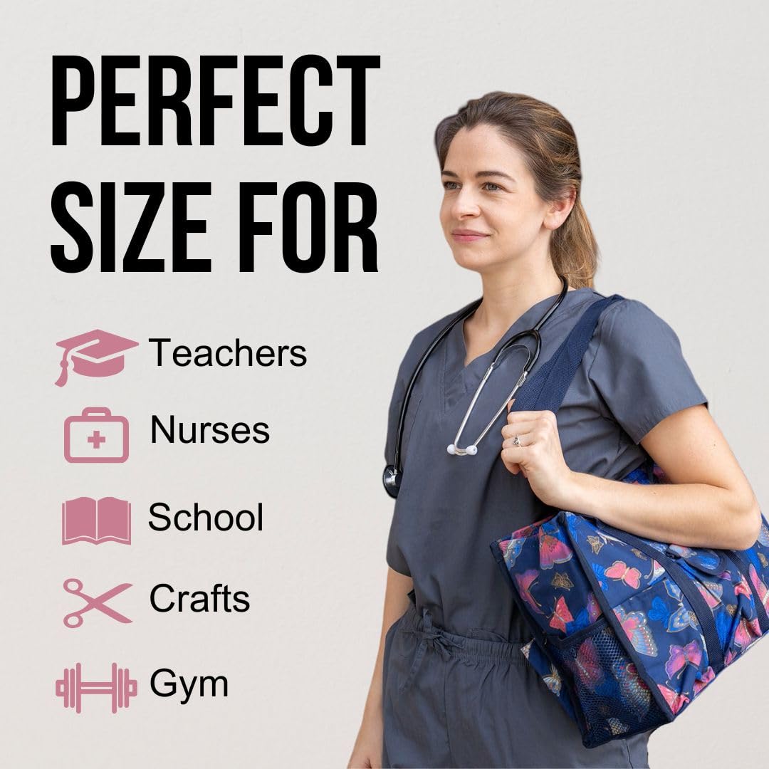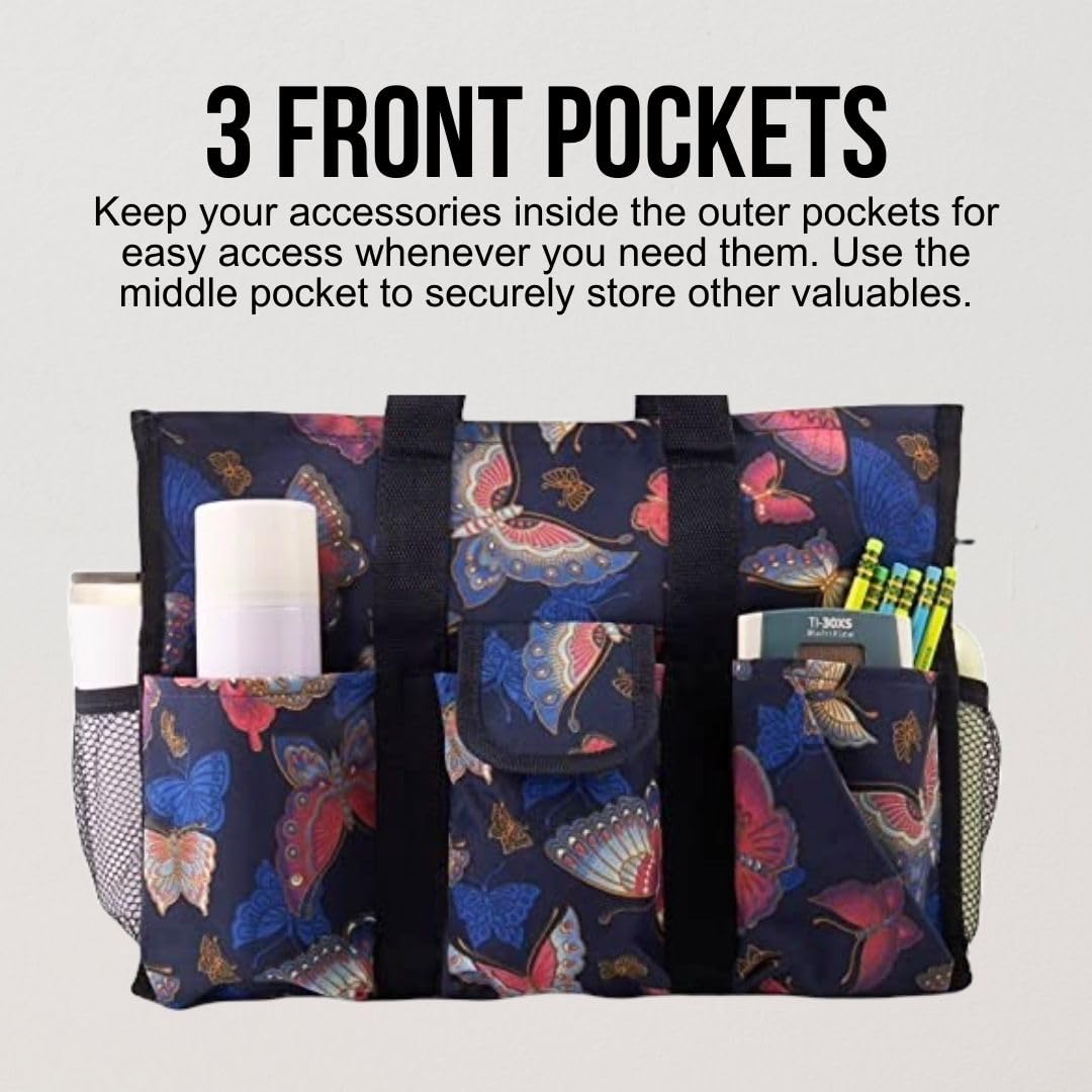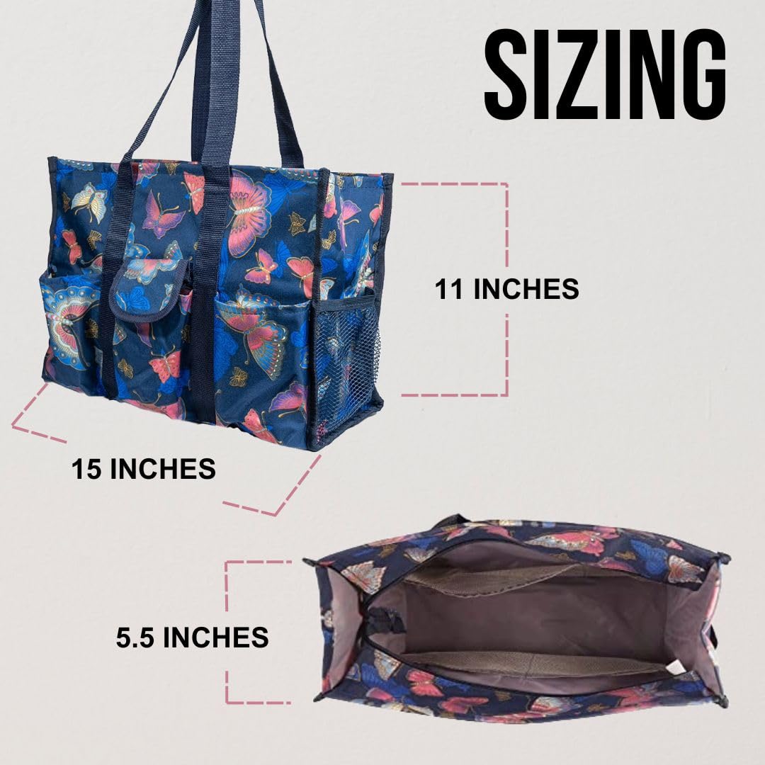 • Utility Tote Bag with Zipper Top - Large Multipurpose Tote Organizer Bag - Butterfly Pink