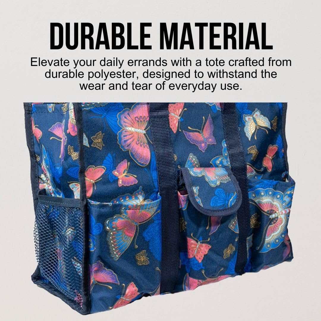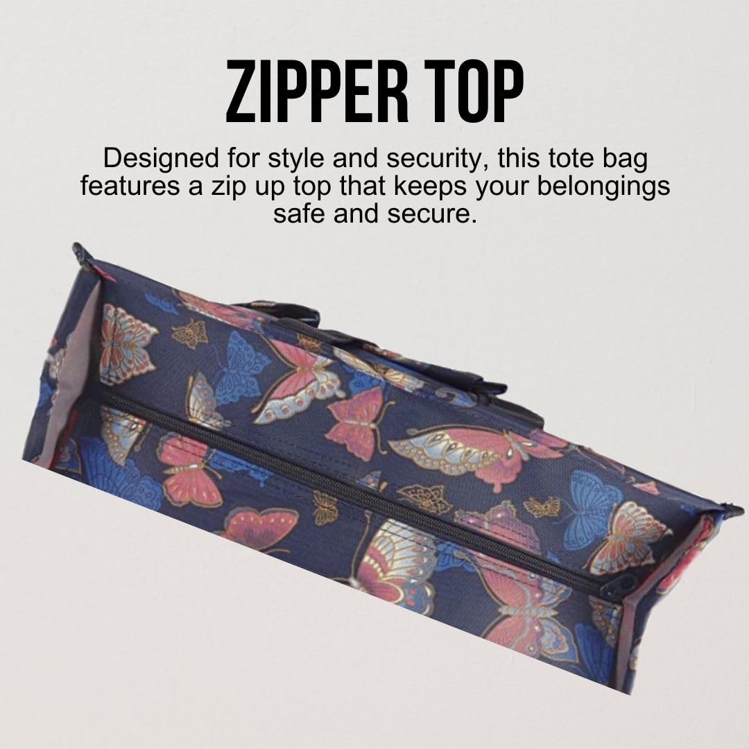 • Utility Tote Bag with Zipper Top - Large Multipurpose Tote Organizer Bag - Butterfly Gold