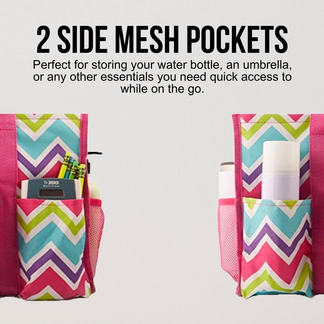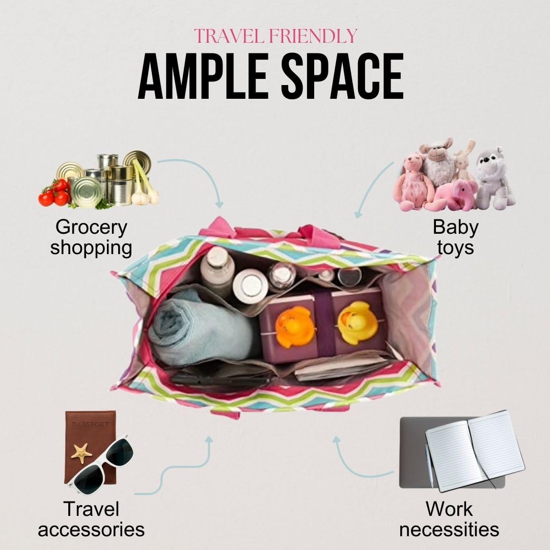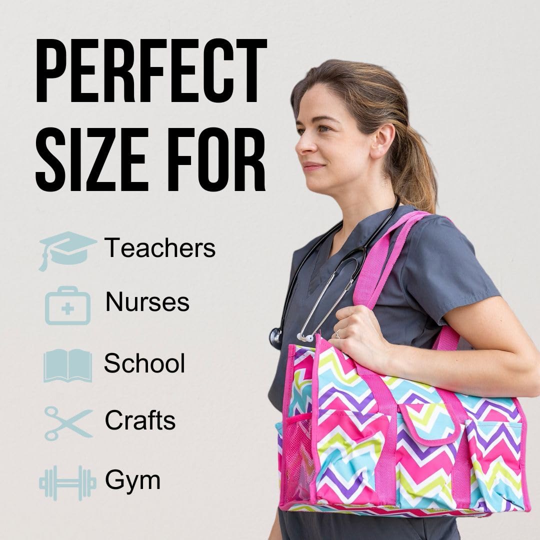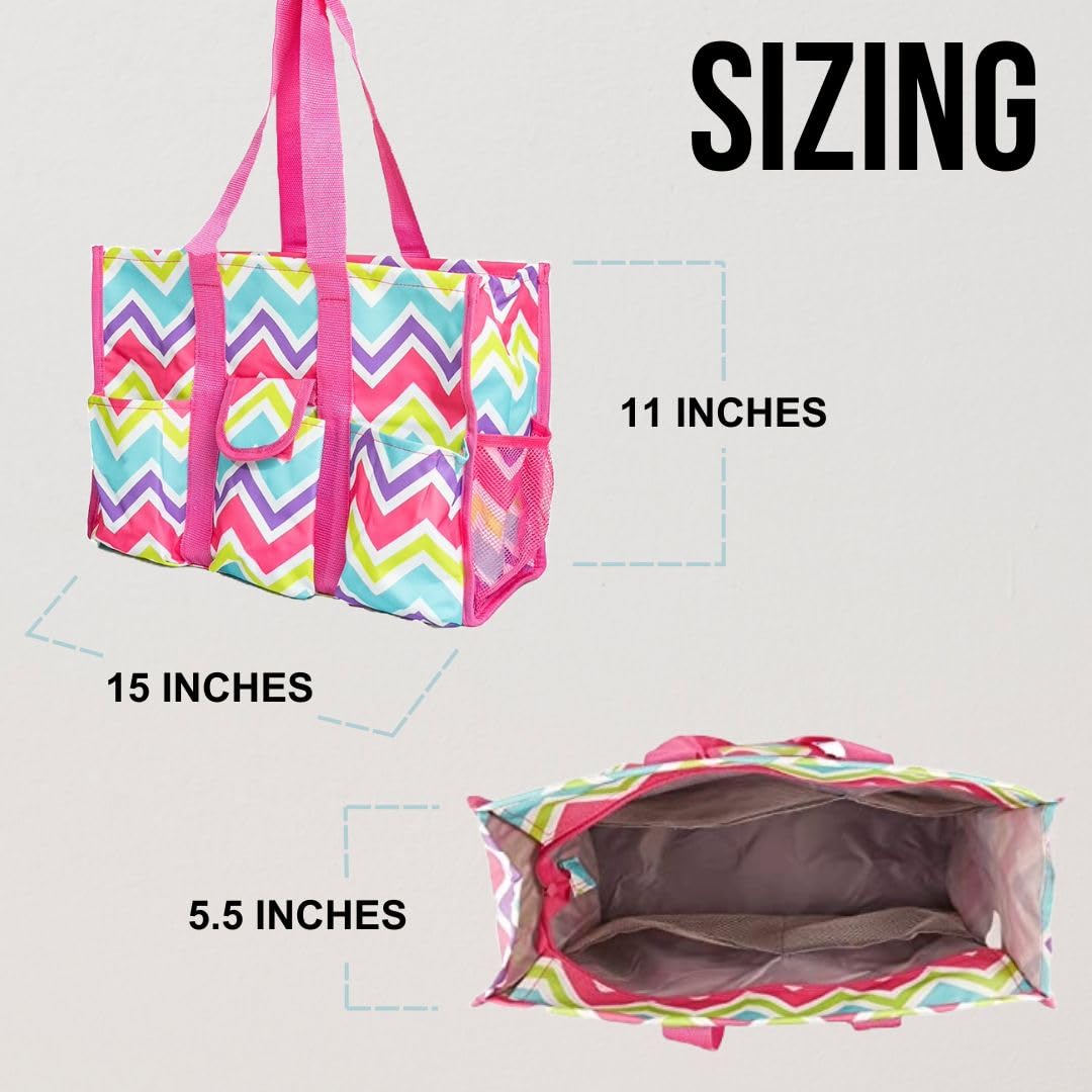 Utility Tote Bag with Zipper Top - Large Multipurpose Tote Organizer Bag - Chevron Multi